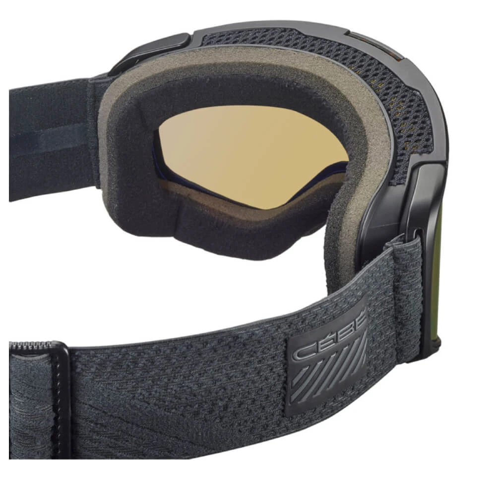Het frame van deze chique CéBé Versus CBG333 Photochromic Snow goggles is cilindrisch gevormd dus heeft alleen horizontaal een bolling. De fijne, meekleurende spiegellens geeft perfect helder en kleurrijk zicht en bescherpt perfect. De band is eenvoudig verstelbaar en het ‘glas’ van de bril is Anti-scratch en Anti-Fog gecoat en is ook dubbelwandig en voorzien van ventilatie. Het flexibele comfortframe en de drievoudige, antibacteriële foamlaag waarmee de skibril het gezicht raakt, zorgen voor een zeer prettig draagcomfort.