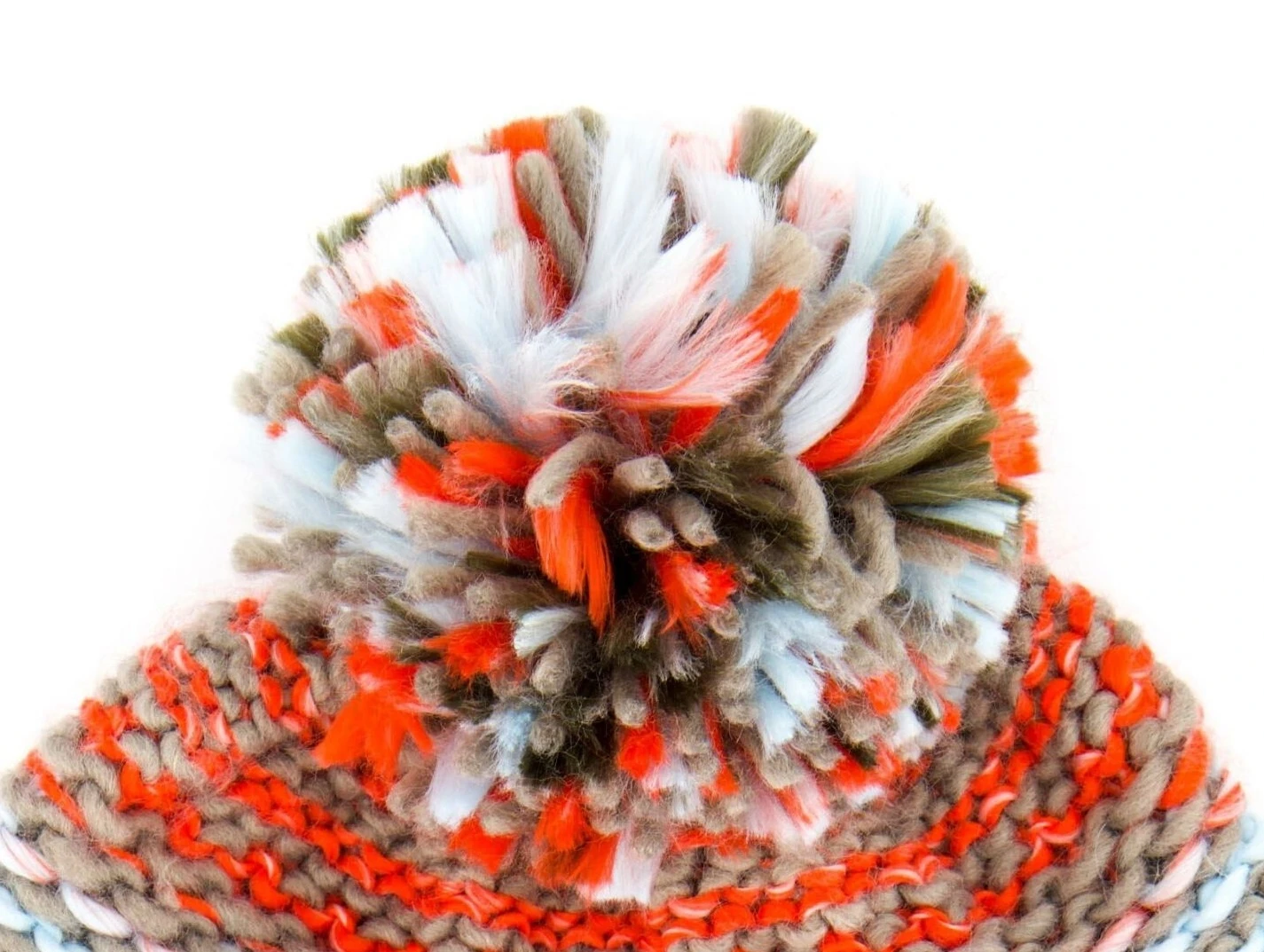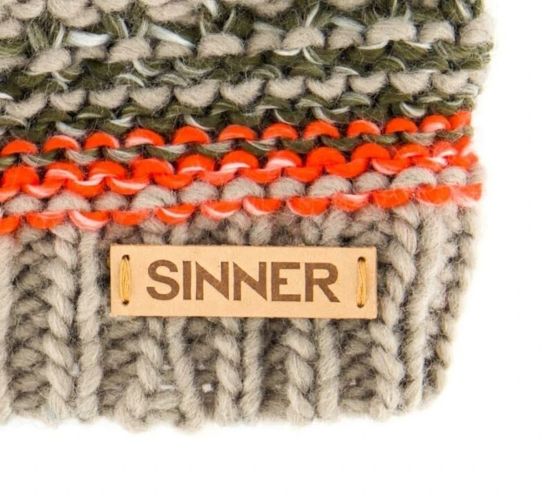 Grof met de hand gebreid, heerlijk warm en gemaakt van heerlijk zacht Acryl, dat is deze grijs melange Sierra Kinder wintermuts met pompom bolletje boverop. De binnenkant van deze beanie is v.v. een warme fleece voering. PU Sinner logo.