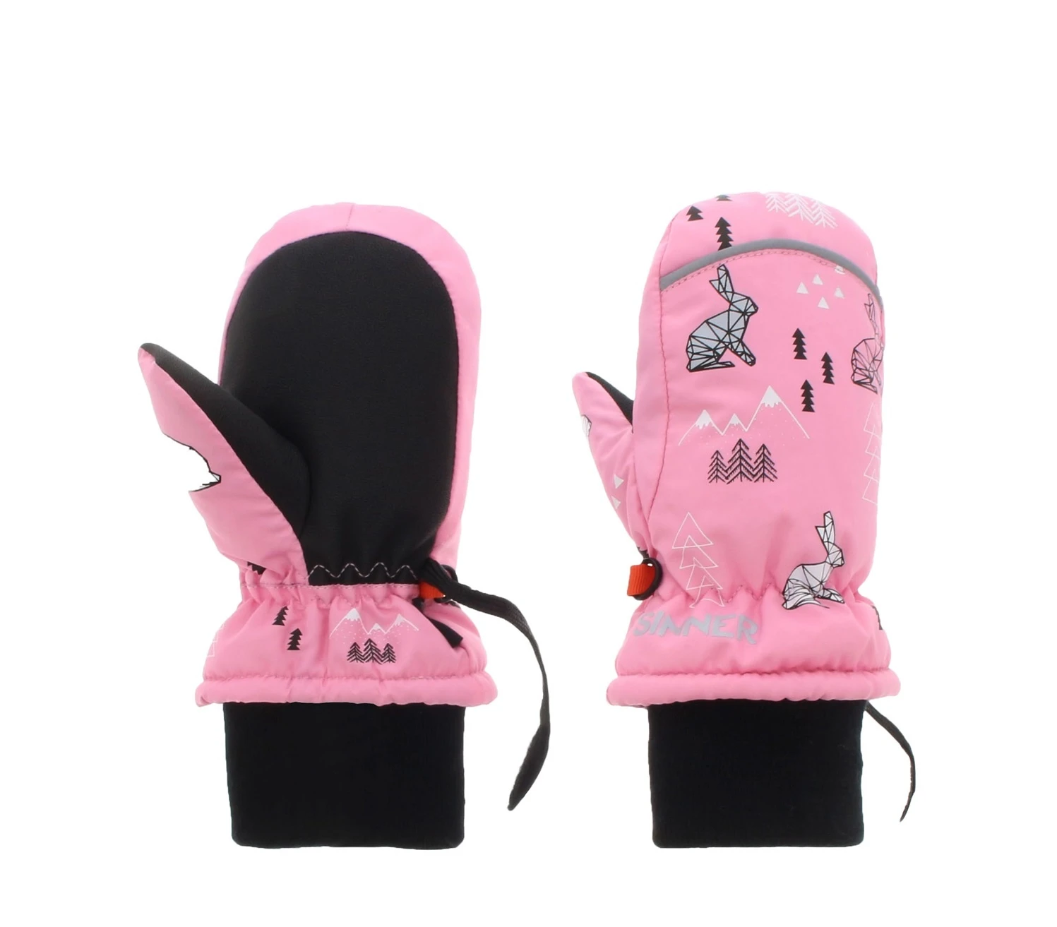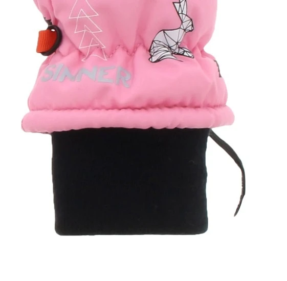 Deze Sinner Tim Junior wantjes / mitts met leuke print erop voor de kleinste wintersporters zijn warm, comfortabel en verkrijgbaar in verschillende maten. Pink met zwarte uitvoering.
