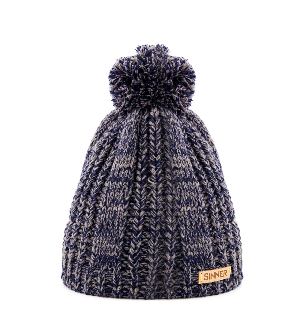 Grof met de hand gebreid, heerlijk warm en gemaakt van heerlijk zacht Acryl, dat is deze blauwe Sinner Wofford kids wintermuts. De binnenkant van deze beanie is v.v. een warme fleece voering. PU Sinner logo.